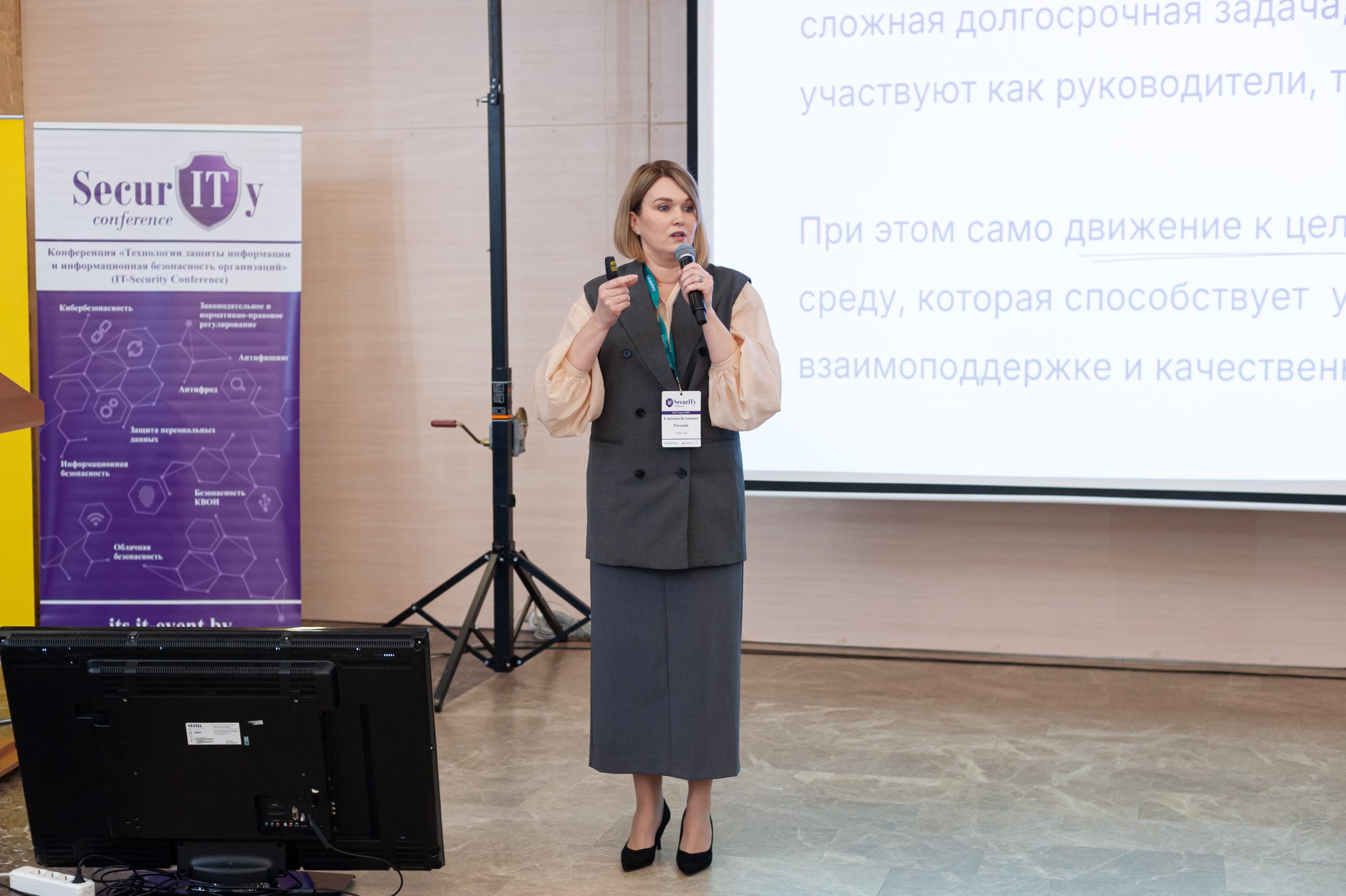 Выступление нашего бизнес-тренера Татьяны Елисеевой-Бузыкиной было на тему «Психологическая безопасность сотрудников подразделений информационной безопасности». Тема нашла большой отклик у участников конференции, вопросы задавали и на выступлении, и после него. На самом деле это базовая тема, которую нужно исследовать в каждой компании, которая задумывается о росте и развитии.